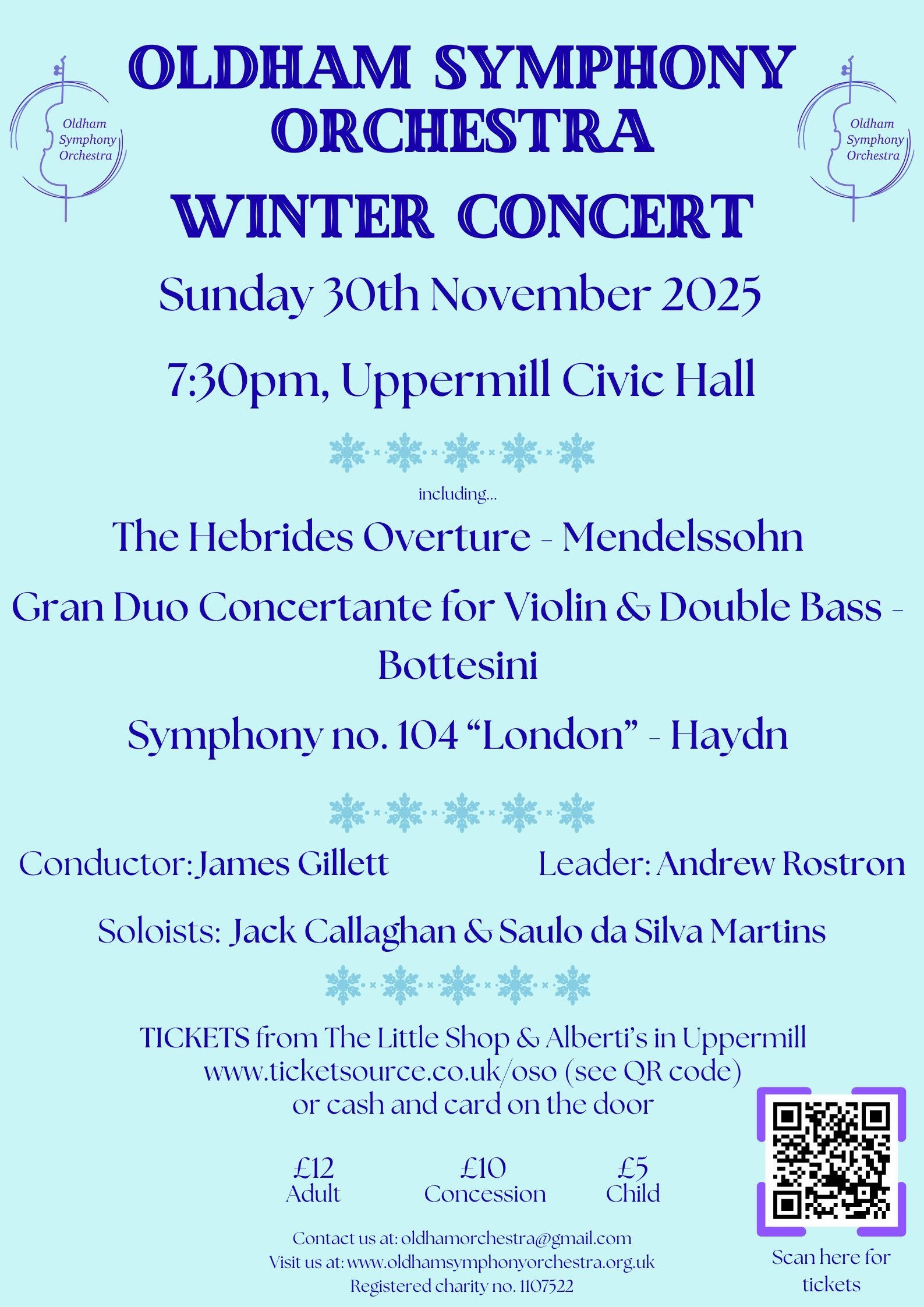 If you are interested in joining Oldham Symphony Orchestra, becoming a Patron or sponsor, please contact oldhamorchestra@gmail.com
